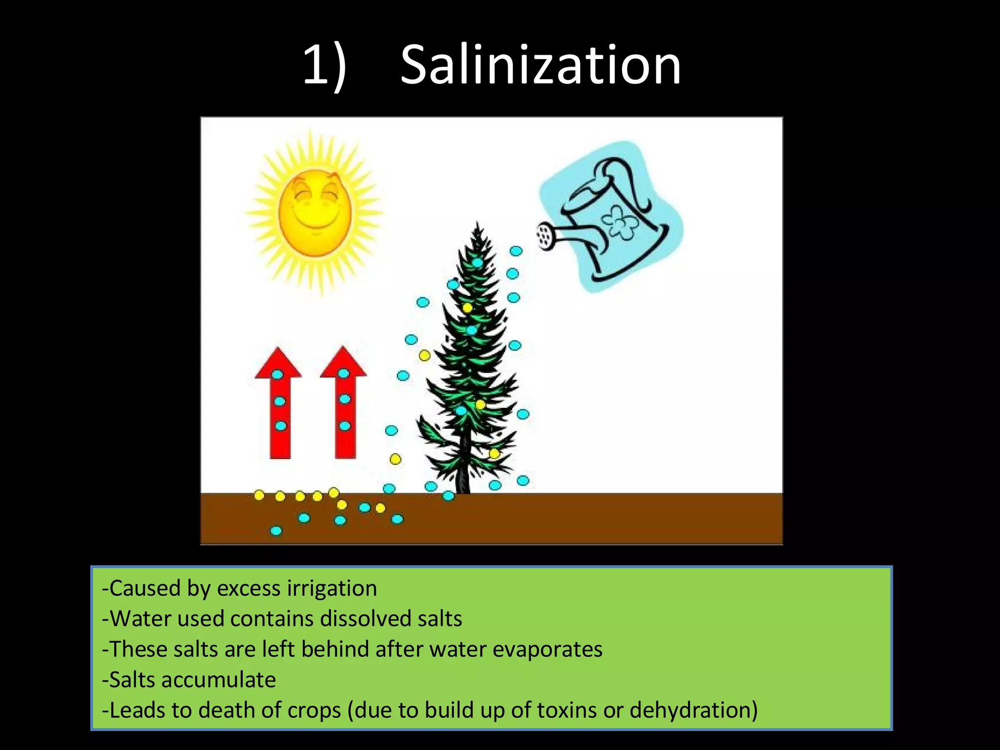 A) When salinization occurs, additional irrigation is used to wash up ...