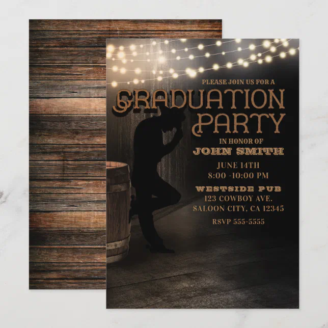 Cowboy Rustic Country Saloon Pub Graduation Party Invitation | Zazzle