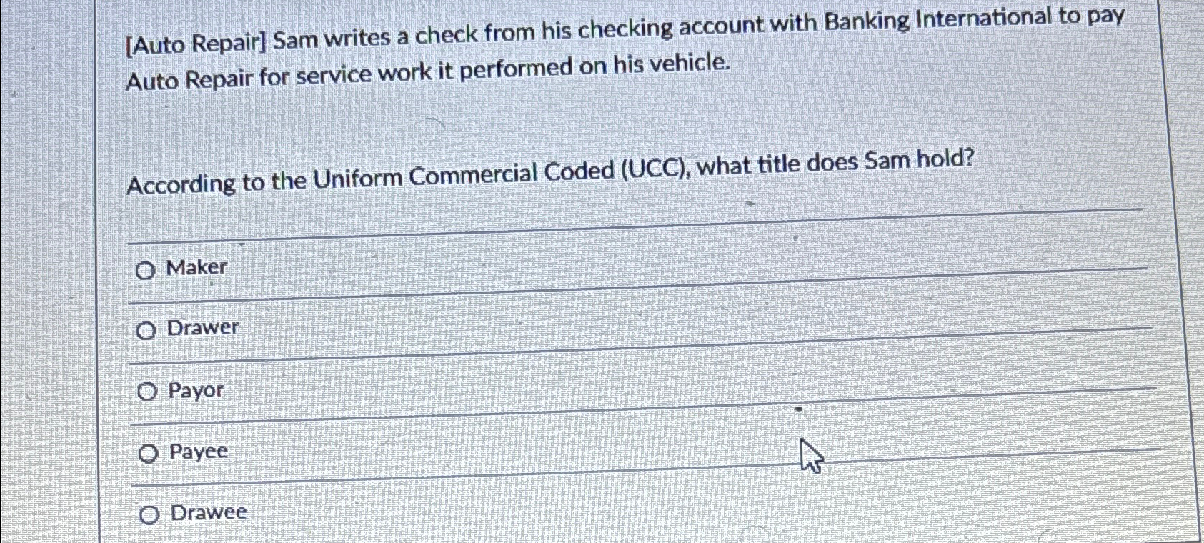Solved [Auto Repair] Sam writes a check from his checking | Chegg.com
