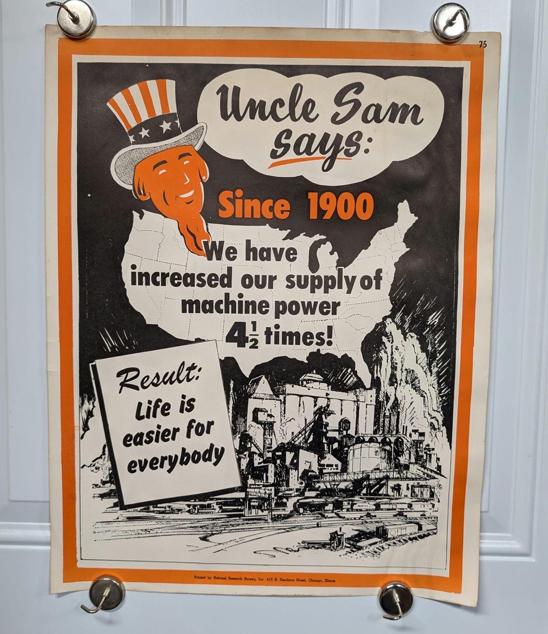 Original Vintage 1950s Uncle Sam Machine Powered Productivity Sign ...