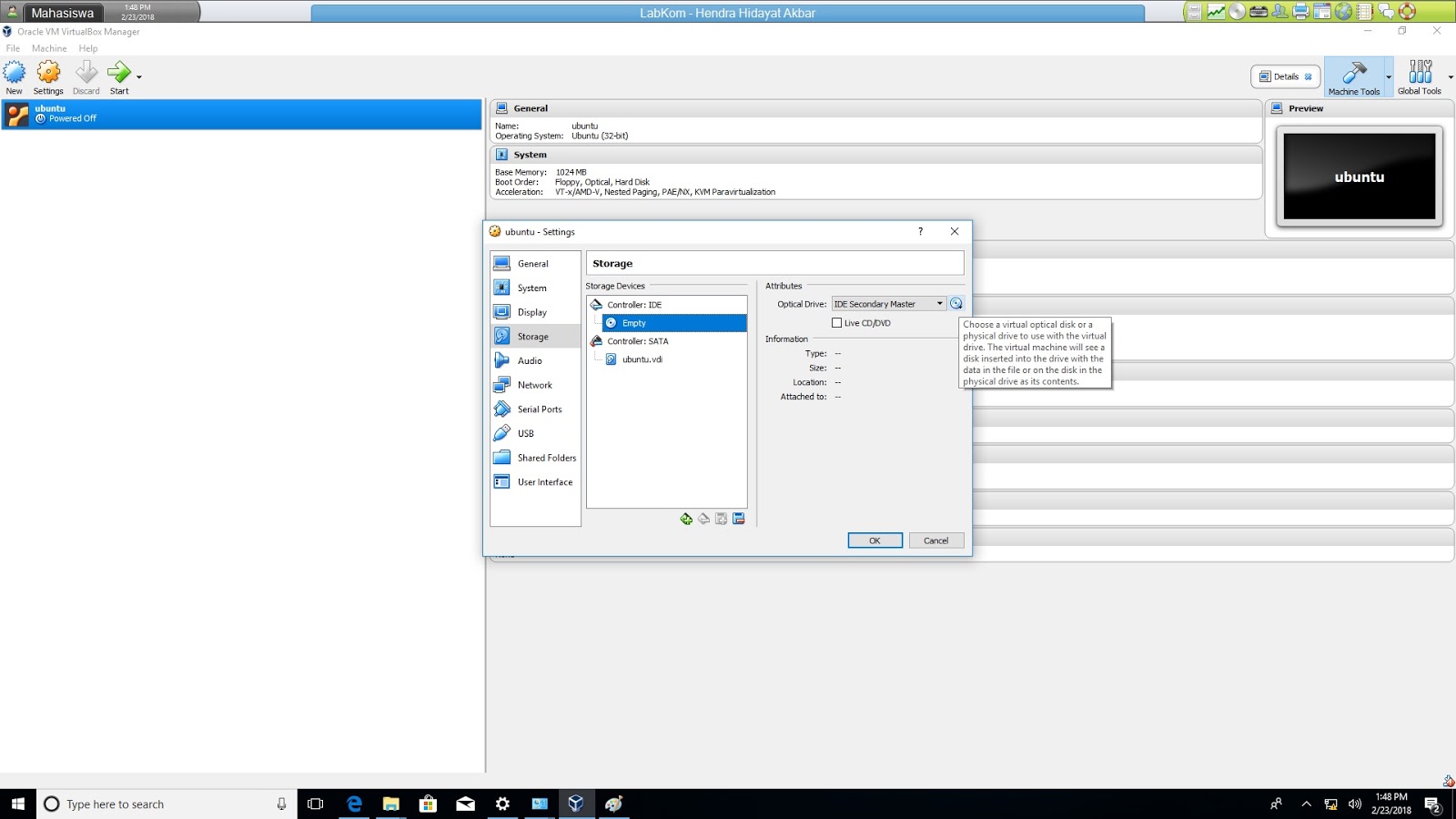Cara Instalisasi Ubuntu (small os) pada Virtual Box Oracle