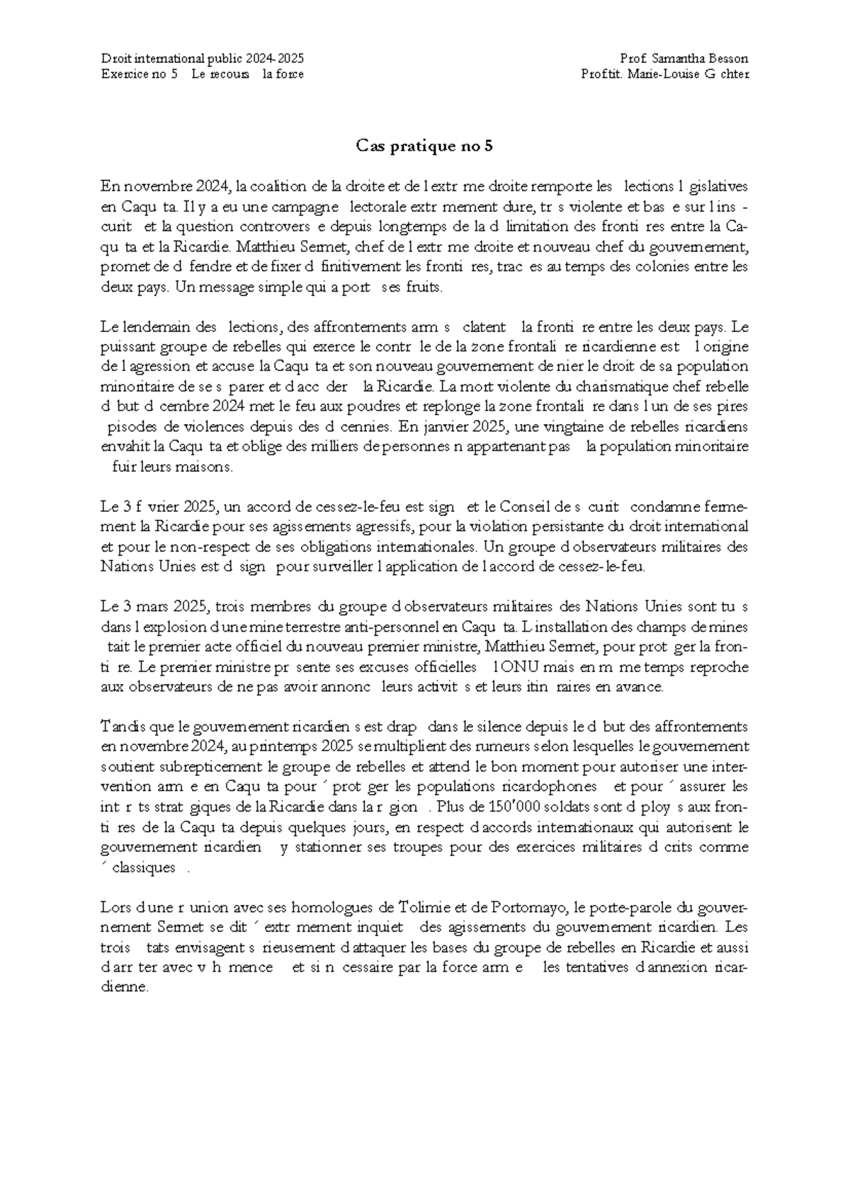 Travaux pratiques 5 donnée - Droit international public 2024-2025 Prof ...