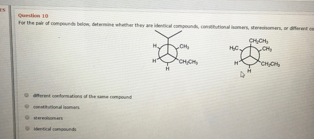 SOLVED: Classify the following pair of compounds as the same compound ...
