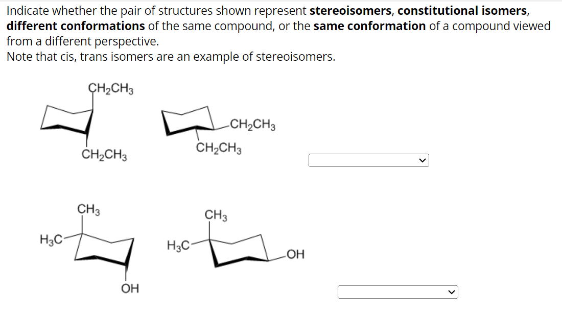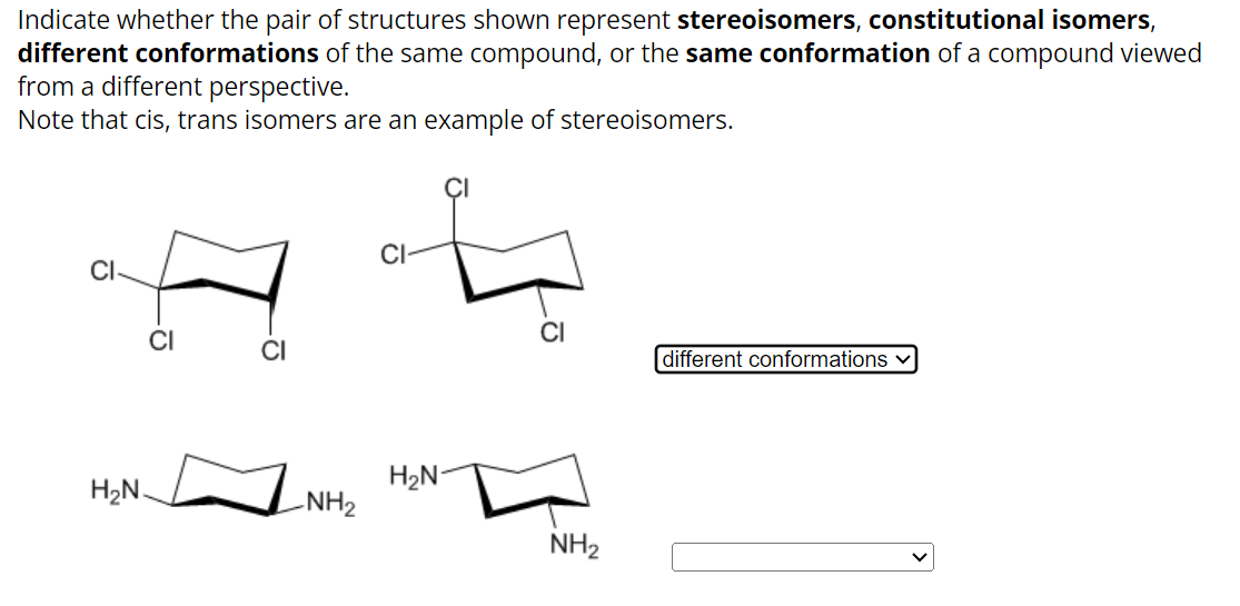 Indicate whether the pair of structures shown represent stereoisomers ...