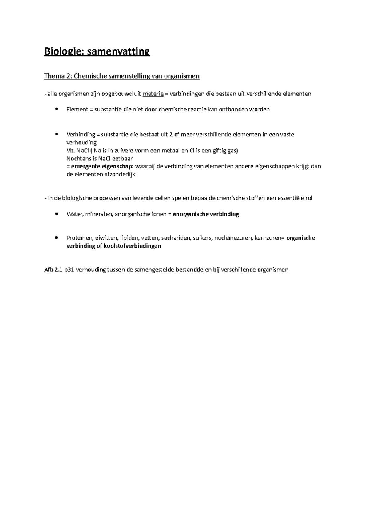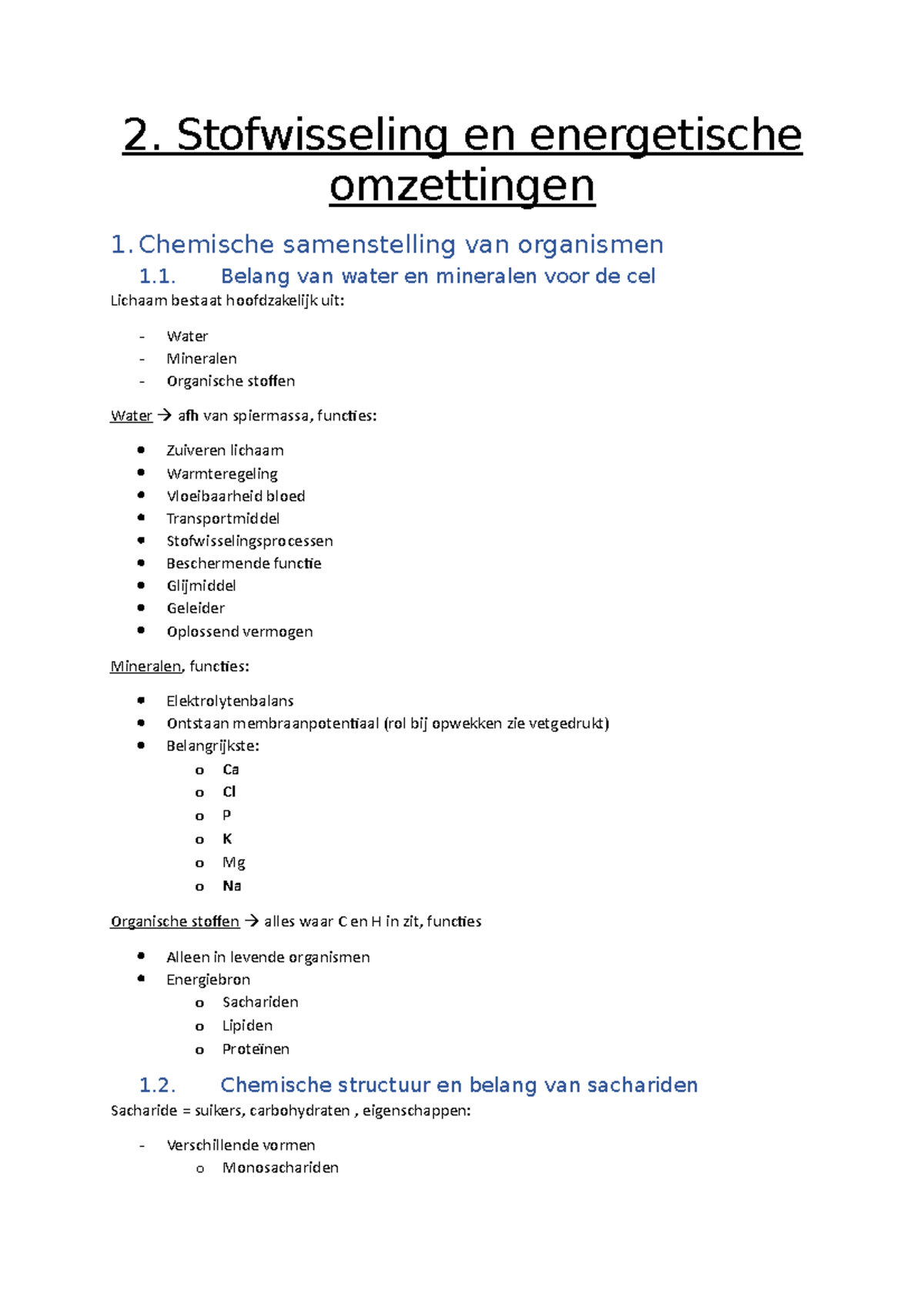 2. chemische samenstelling cellen - BIOLOGIE H Inhoudsopgave BIOLOGIE ...