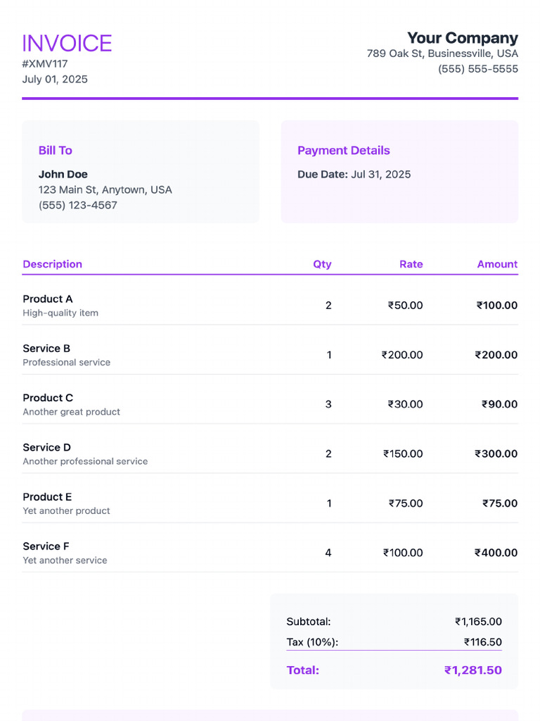 Blank invoice template Free Download word & Excel & google docs & sheets