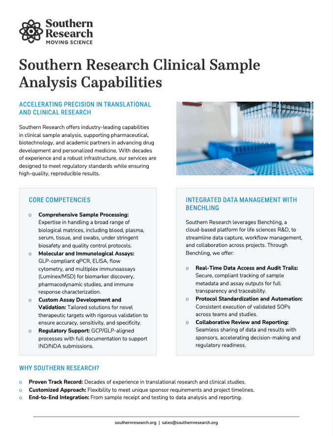 Clinical Sample Analysis Capabilities | Southern Research