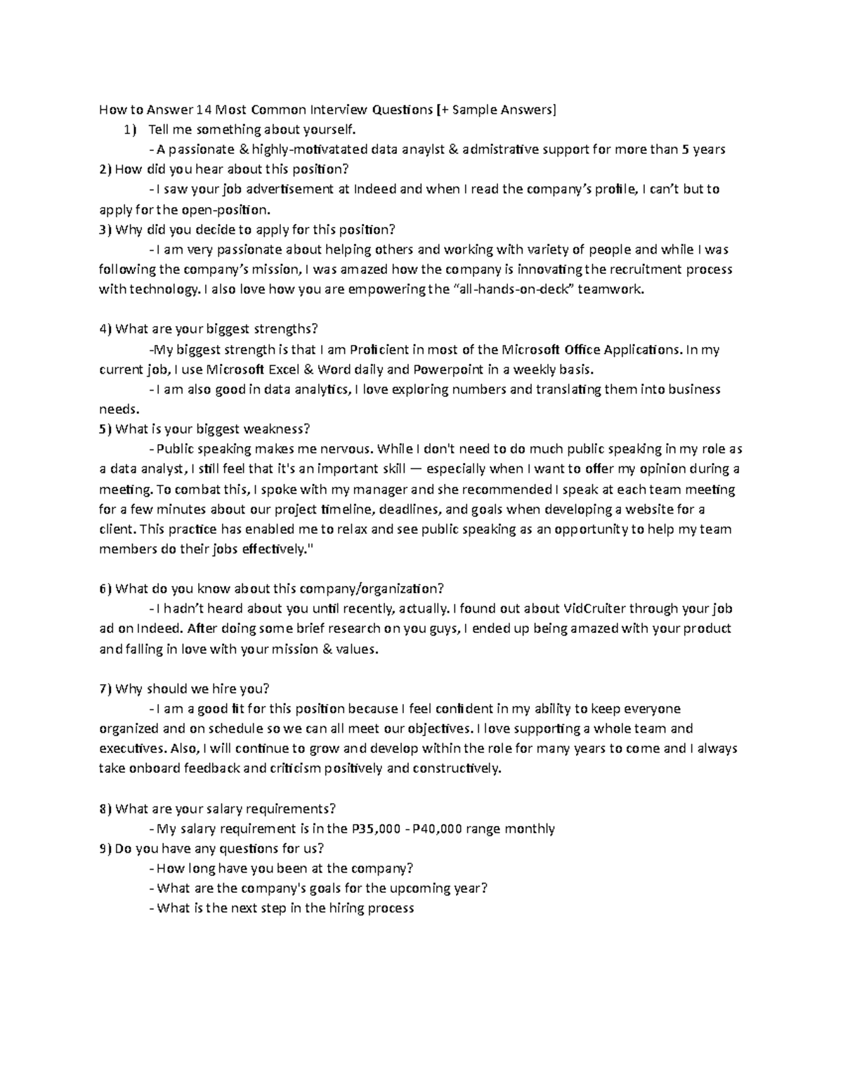 Common Interview Questions And Sample Answers