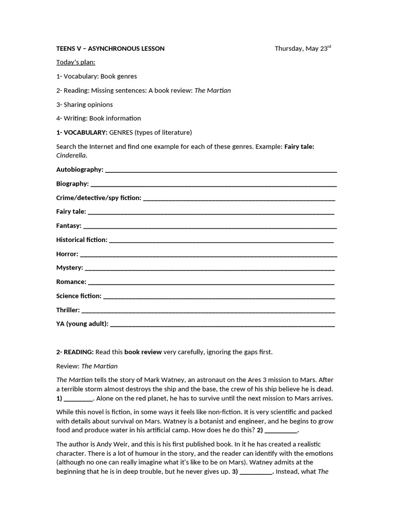 Teens V - Asynchronous Lesson | PDF | The Martian (Film)