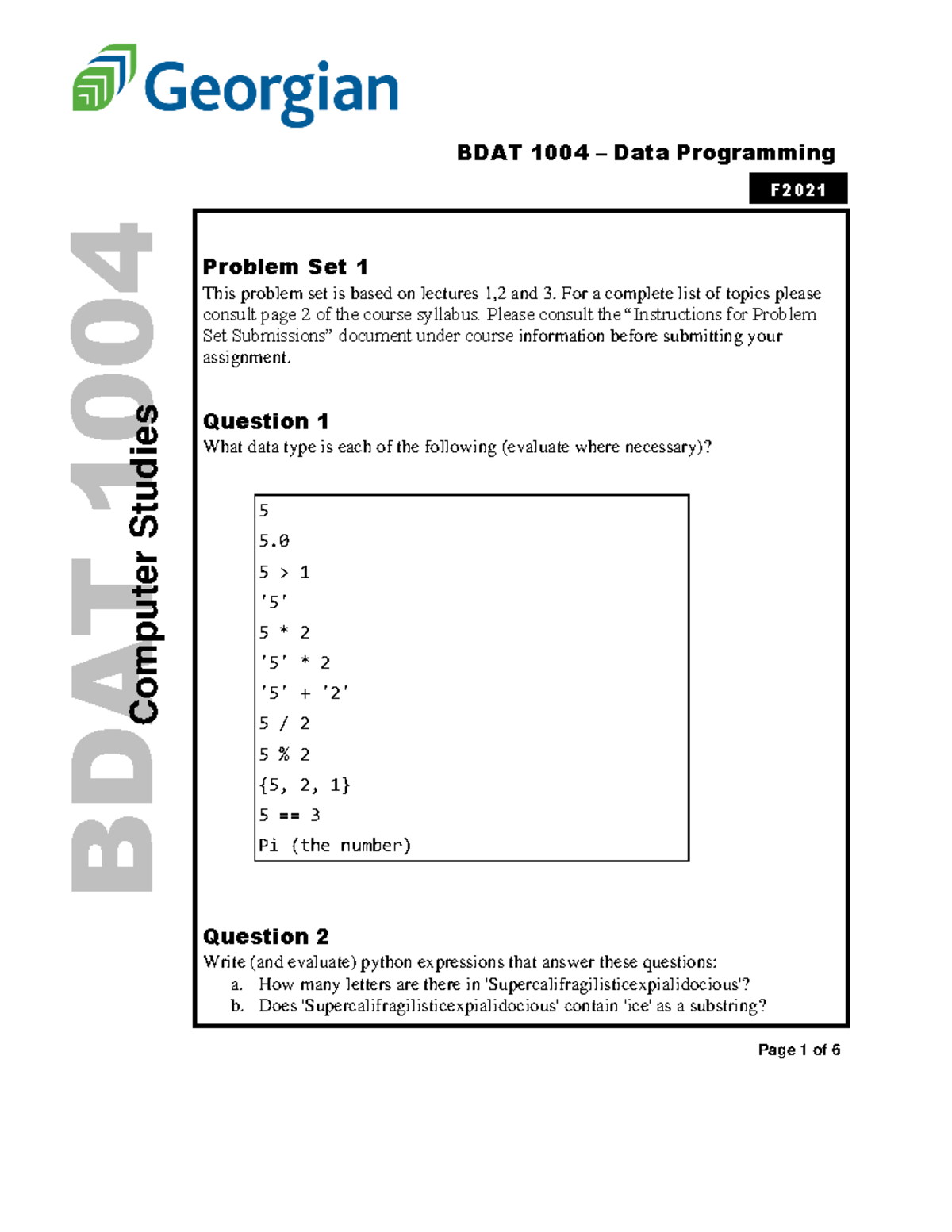 BDAT 1004 Problem Set Submission Instructions 1 .pdf - Computer Studies ...