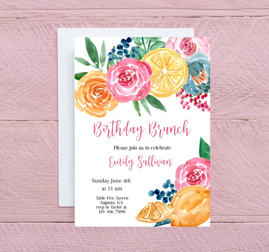 Floral Brunch Invitation | Birthday Brunch | Lemon Floral Invitation ...