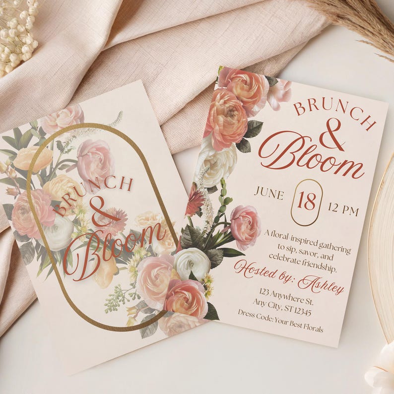 Digital Brunch Invitation Canva Template Editable Brunch & Bloom Garden ...