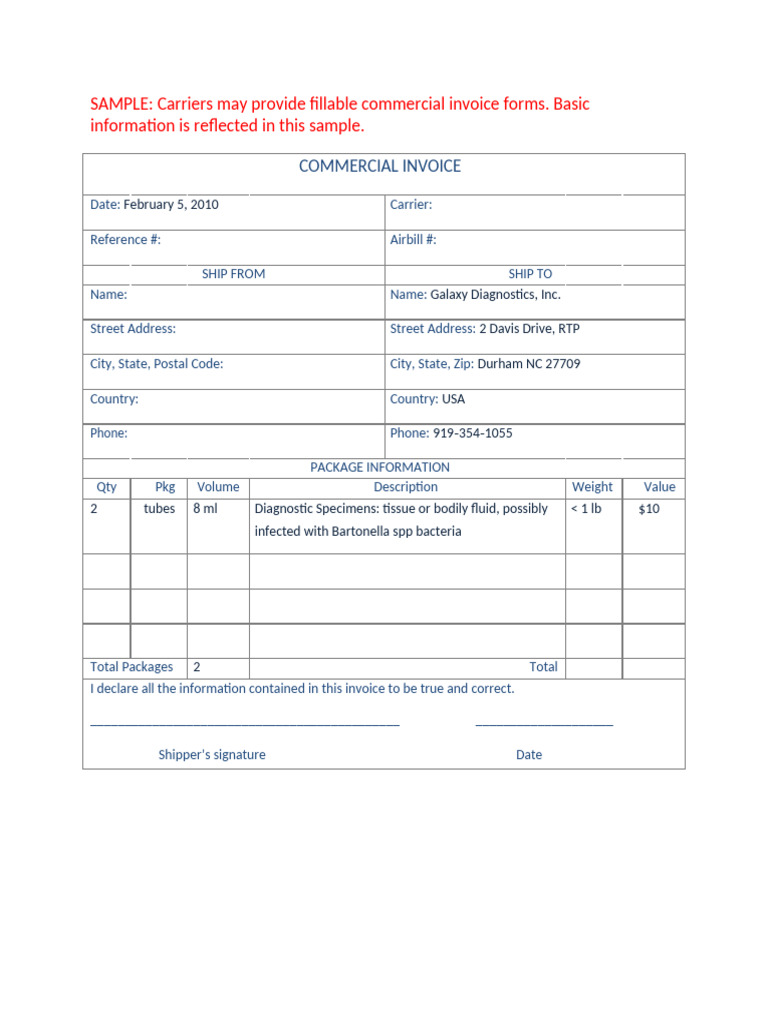 Commercial Invoice Value For Samples at Anton Thomas blog