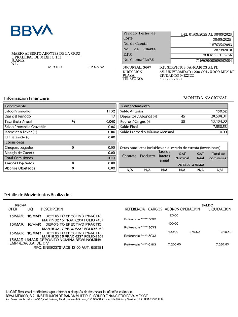 Mexican Banorte bank statement 3 – 6 months Excel and PDF example – Mytempl