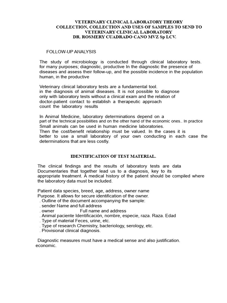 Veterinary Clinical Lab Sample Collection | PDF | Vein | Cytopathology