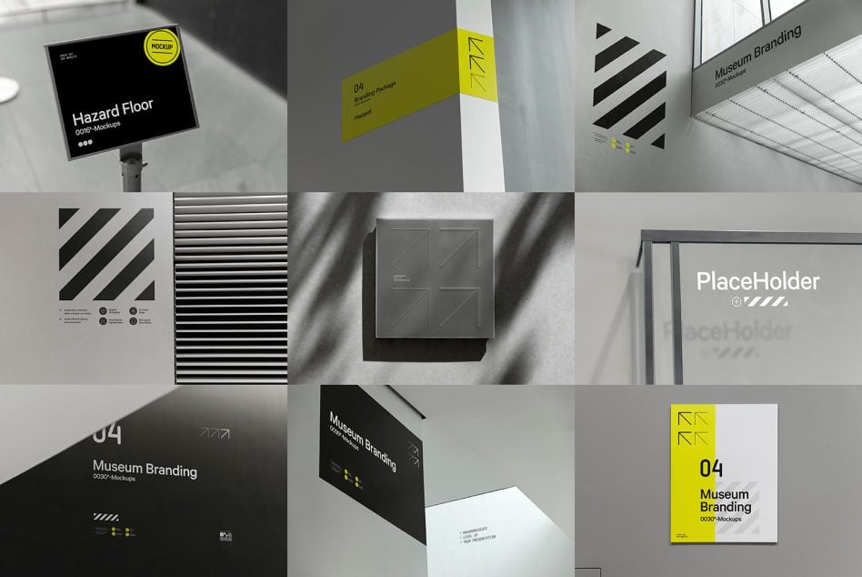 Diverse signage mockup collection psd templates for indoor branding ...