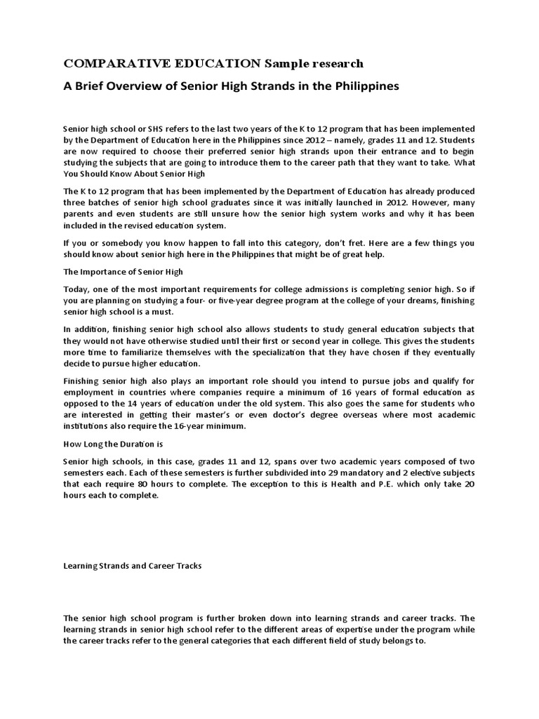 COMPARATIVE EDUCATION Sample Research | PDF | Educational Stages ...