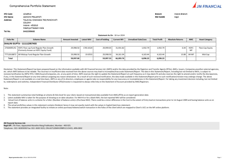 Comprehensive Portfolio Statement | PDF | Corporations | Business