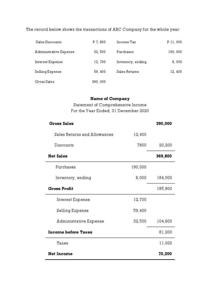 statement of comprehensive income problems with no answer - STATEMENT ...