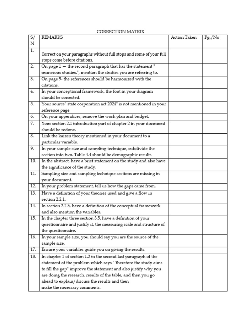 CORRECTION MATRIX FOR DISSERTATION REPORT.docx - MATRIX FOR ...