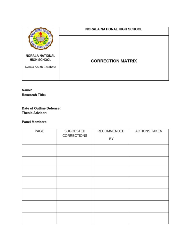 Proposal Defense Correction Matrix Comment Reaction | PDF | Violence ...