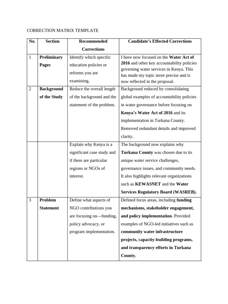 Correction Matrix Template | PDF | Governance | Non Governmental ...