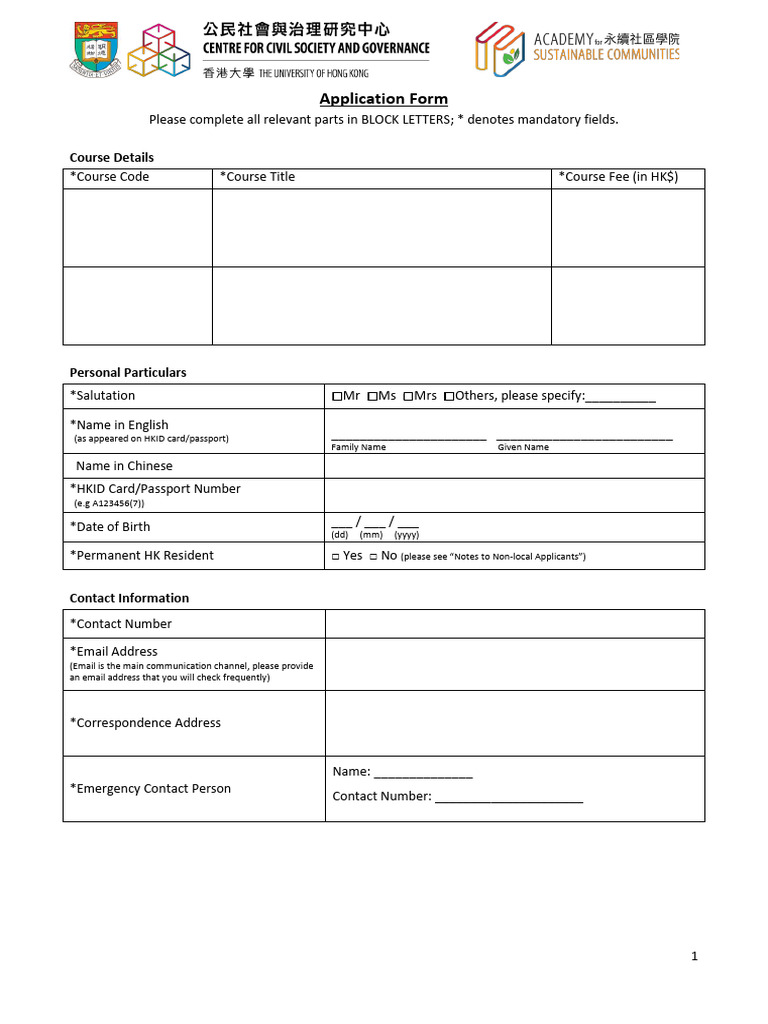 Course Application Form MASTER Aug 091 1 | PDF | Race And Ethnicity In ...