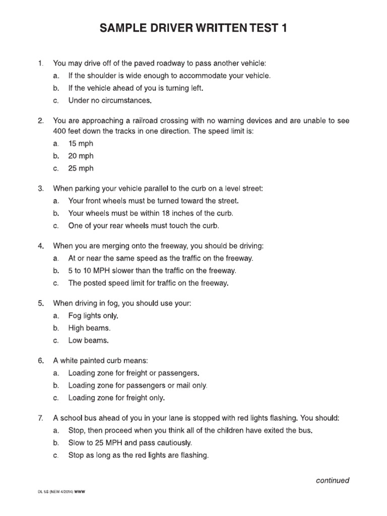 16 PRINTABLE SAMPLE DMV TEST - SamplePrintable2