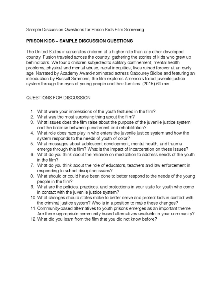 Sample Discussion Questions For Prison Kids Film Screening | PDF | Self ...