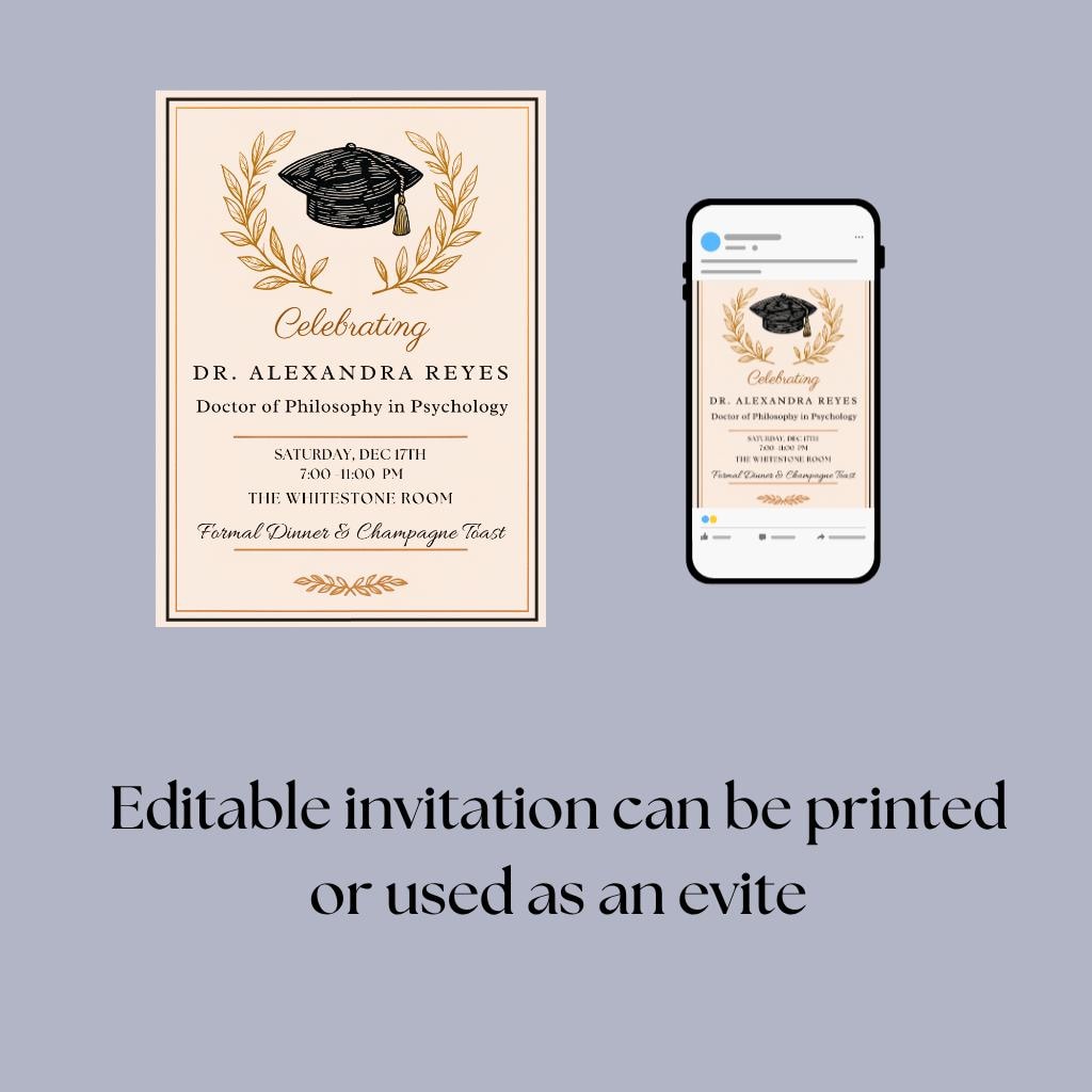 Editable Phd Graduation Invitation, Doctorate Graduate Printable ...