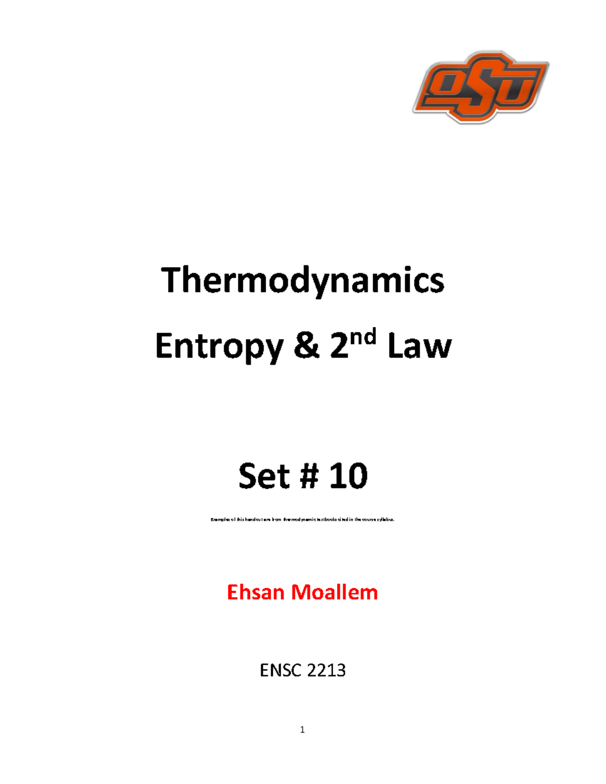 10 - Lecture Notes - Set 10 - Thermodynamics - Entropy & 2nd Law ...