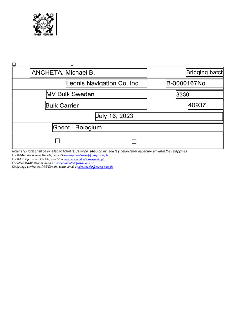 Seaman Disembarkation Form Sample | PDF