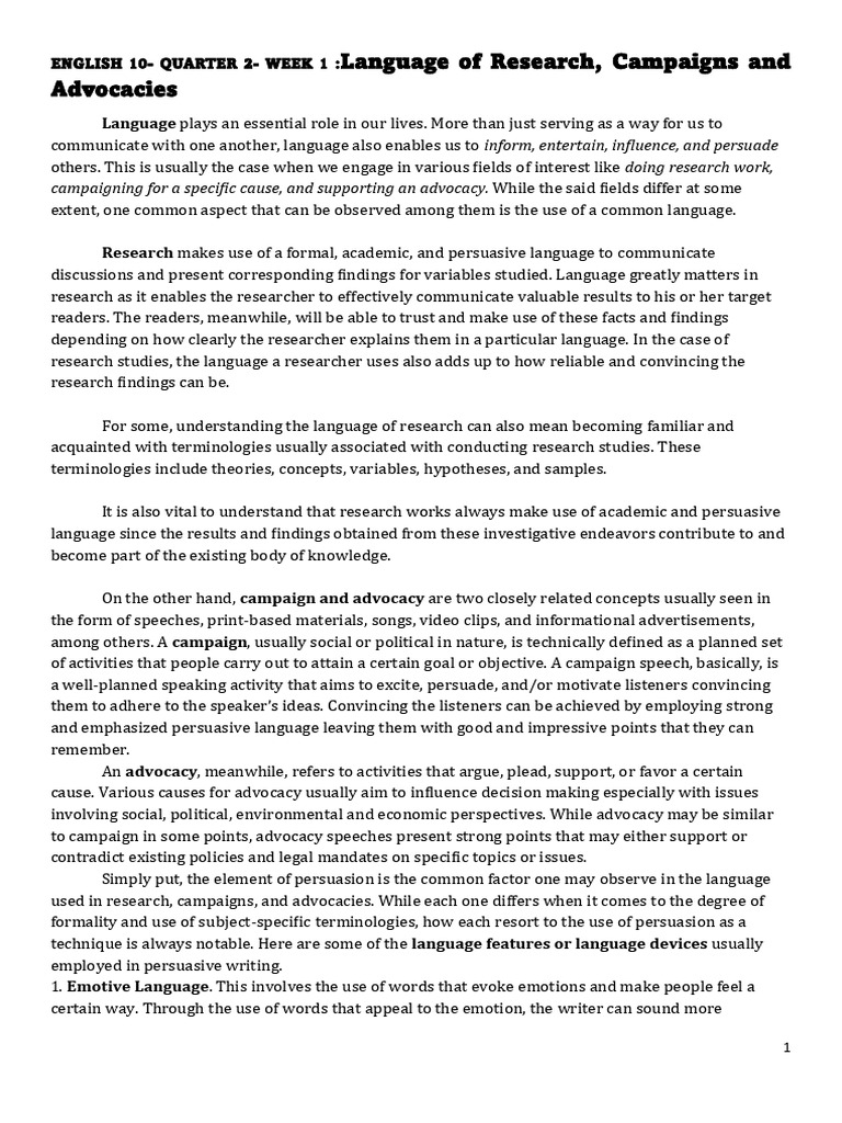 ENGLISH 10 Q2 Module W1 4 | PDF | Persuasion | Essays