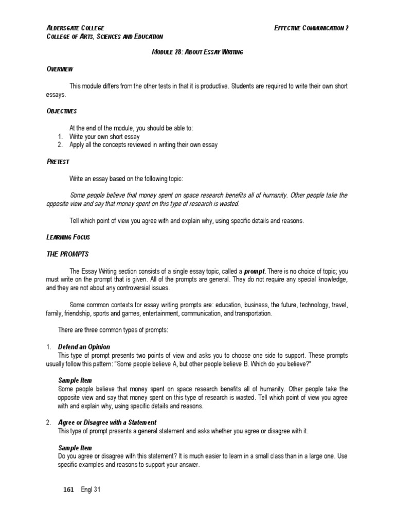 Module 28 About Writing The Essay | PDF | Essays | Writers