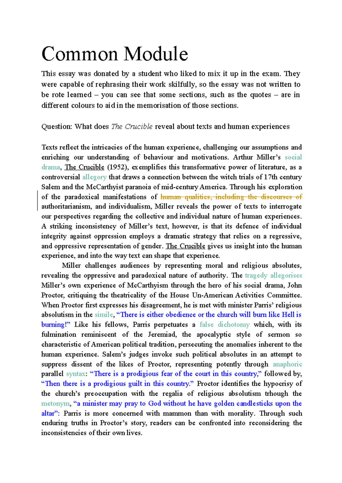 2021 Exemplar Common Module Essay - Common Module This essay was ...