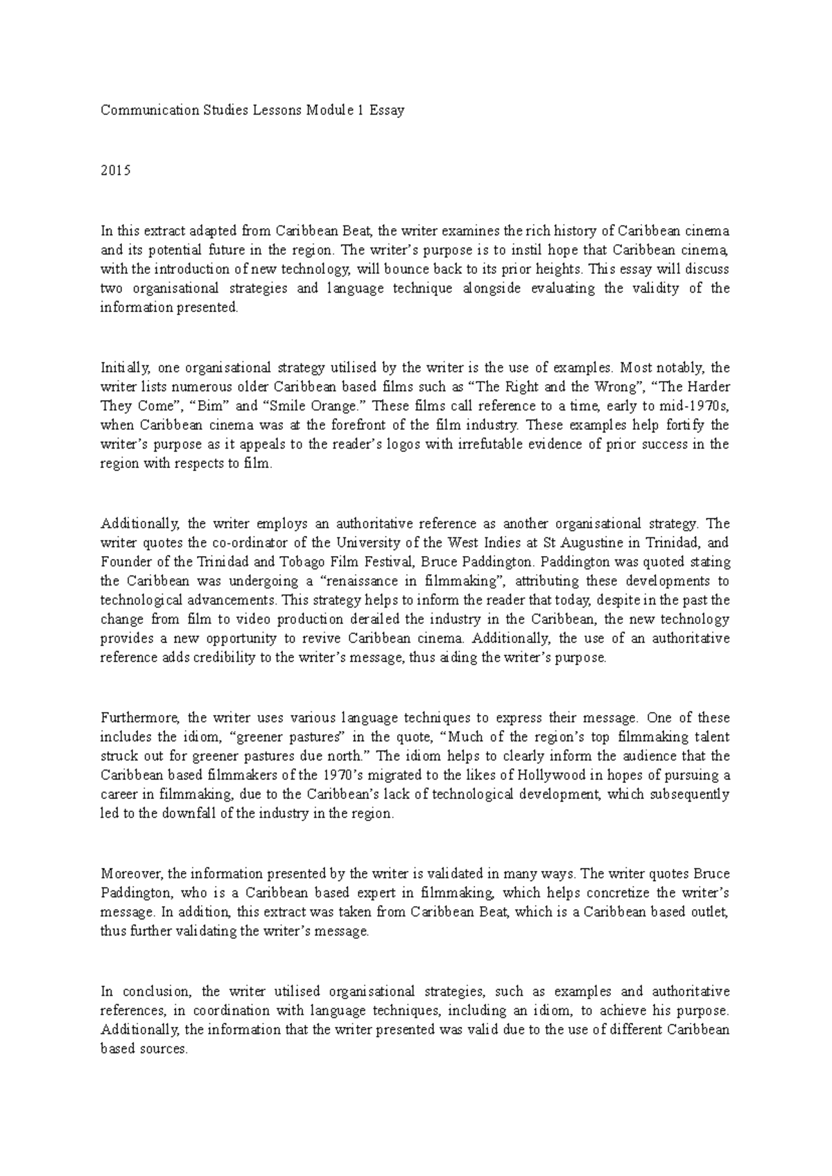 CAPE Communication Studies Module 1 Essay: Caribbean Cinema Insights ...