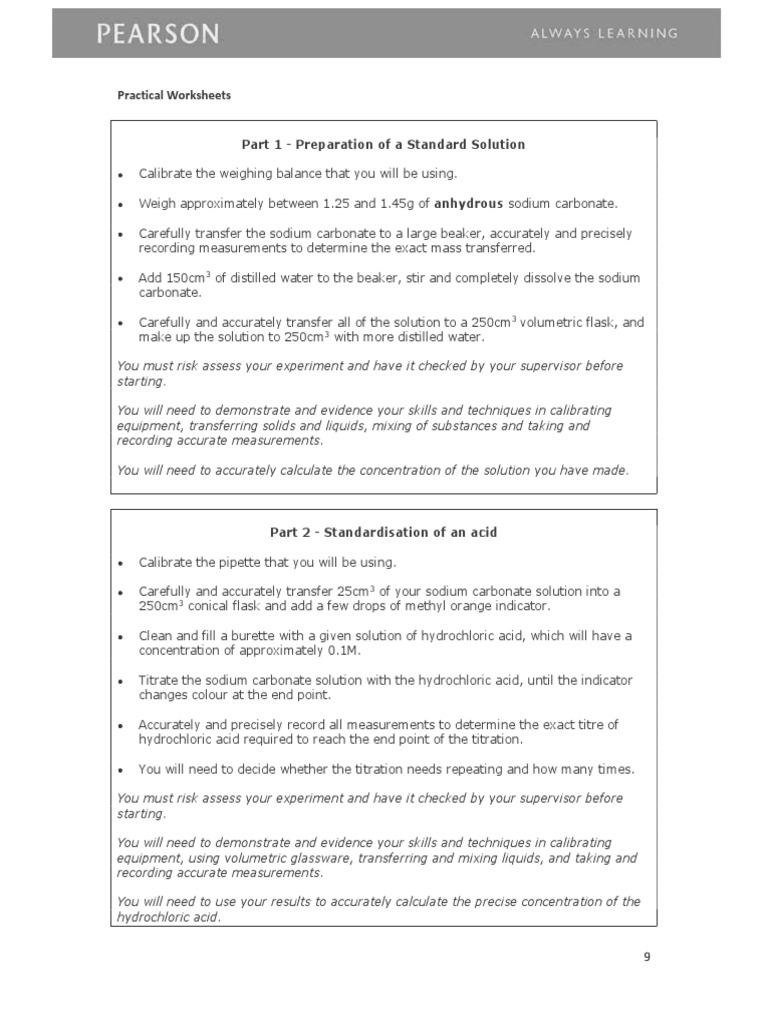 Sample Learner Work - No Col | PDF | Titration | Chemistry