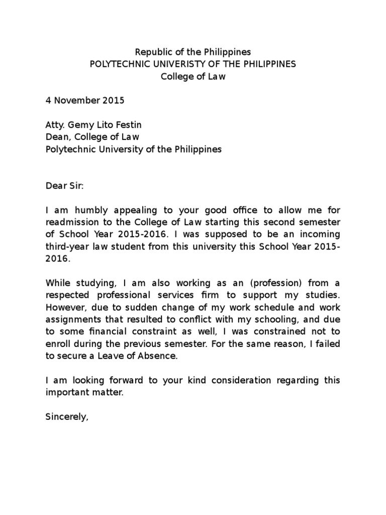 Sample Letter of Intent To Return (PUP-COL) | PDF | Law