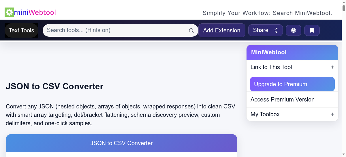 JSON to CSV Converter - Flatten Nested JSON Arrays into Tabular CSV Online