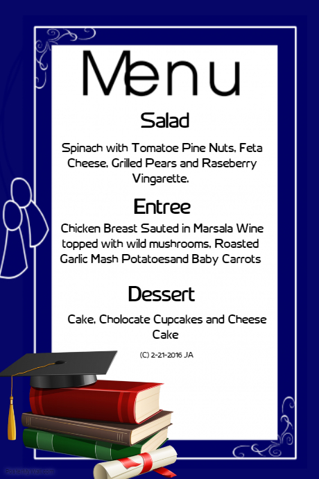 Graduation Dinner Menu Card Design