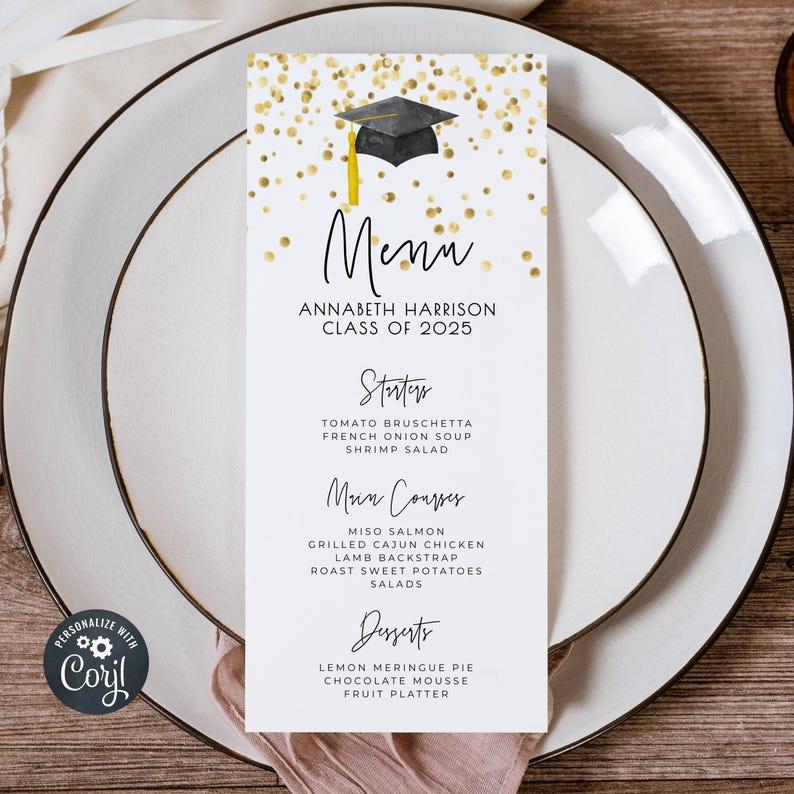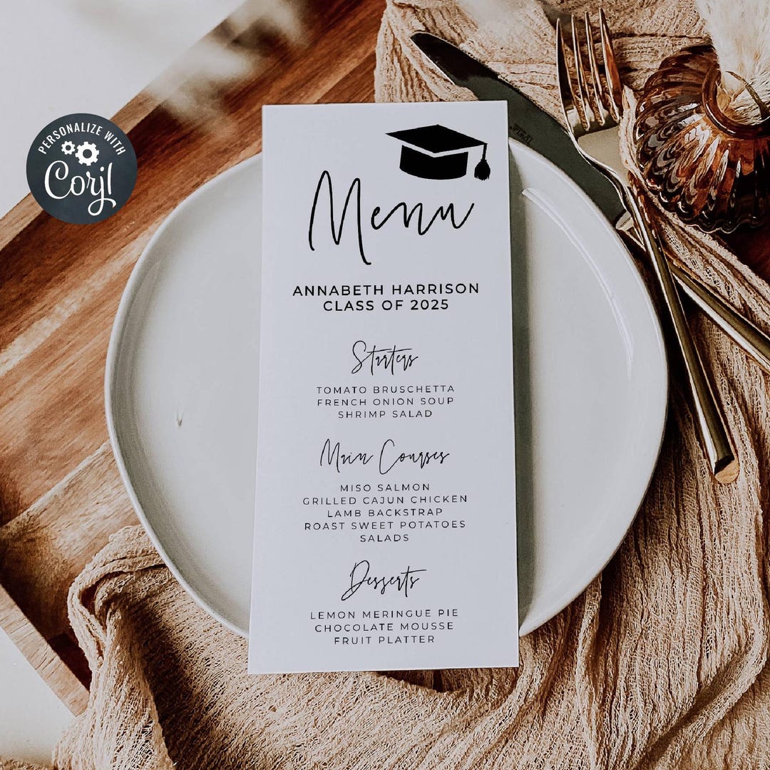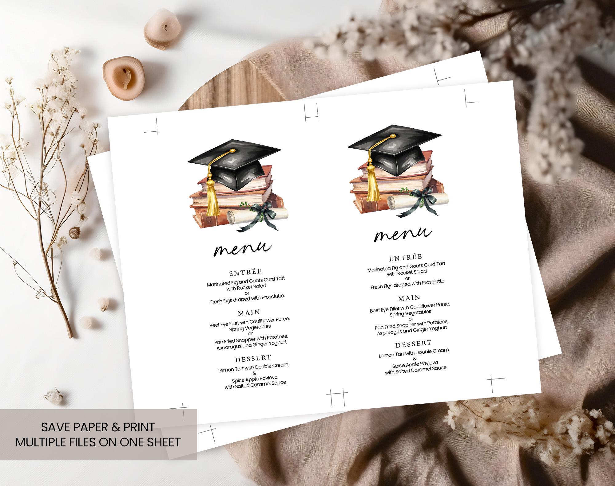 Graduation Menu Template, Graduation Party Menu Template, Elegant Menu ...