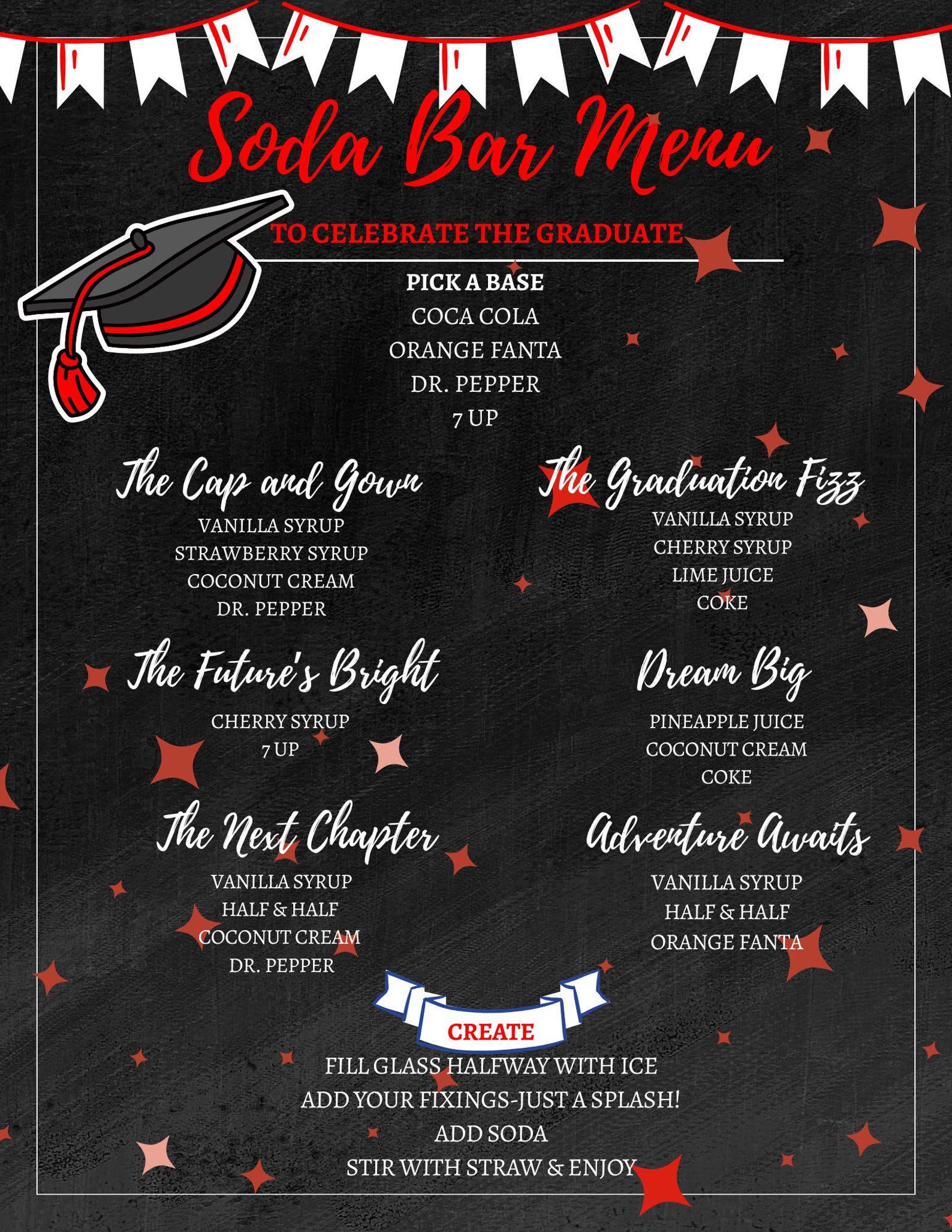 Graduation Soda Bar Menu | Black Background | 5 Color Options | Digital ...