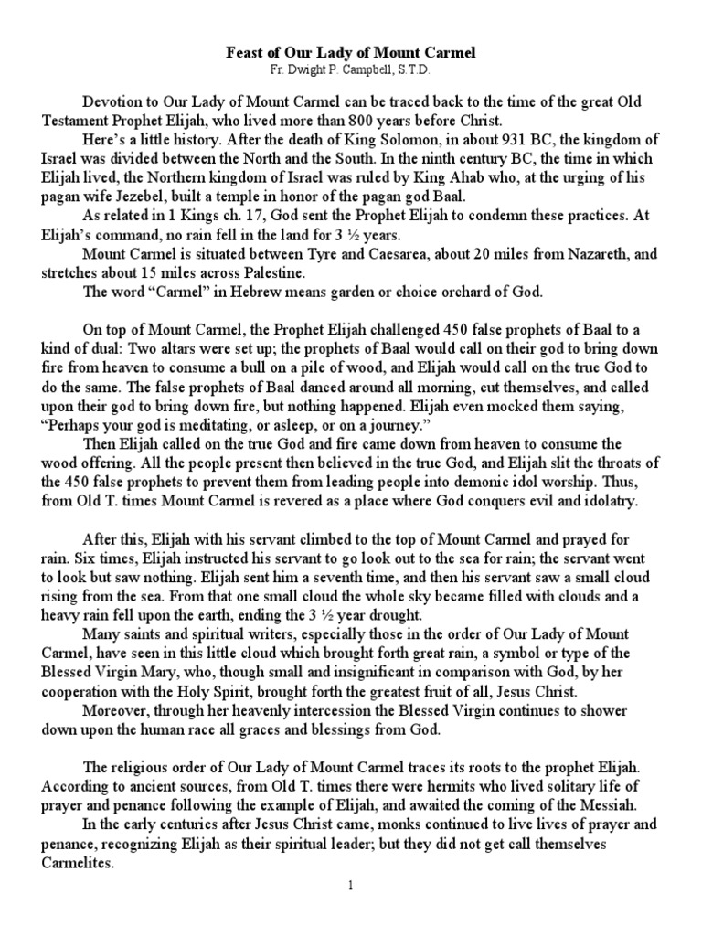 HOmily Our Lady of Mount Carmel | PDF | Elijah | Mary, Mother Of Jesus
