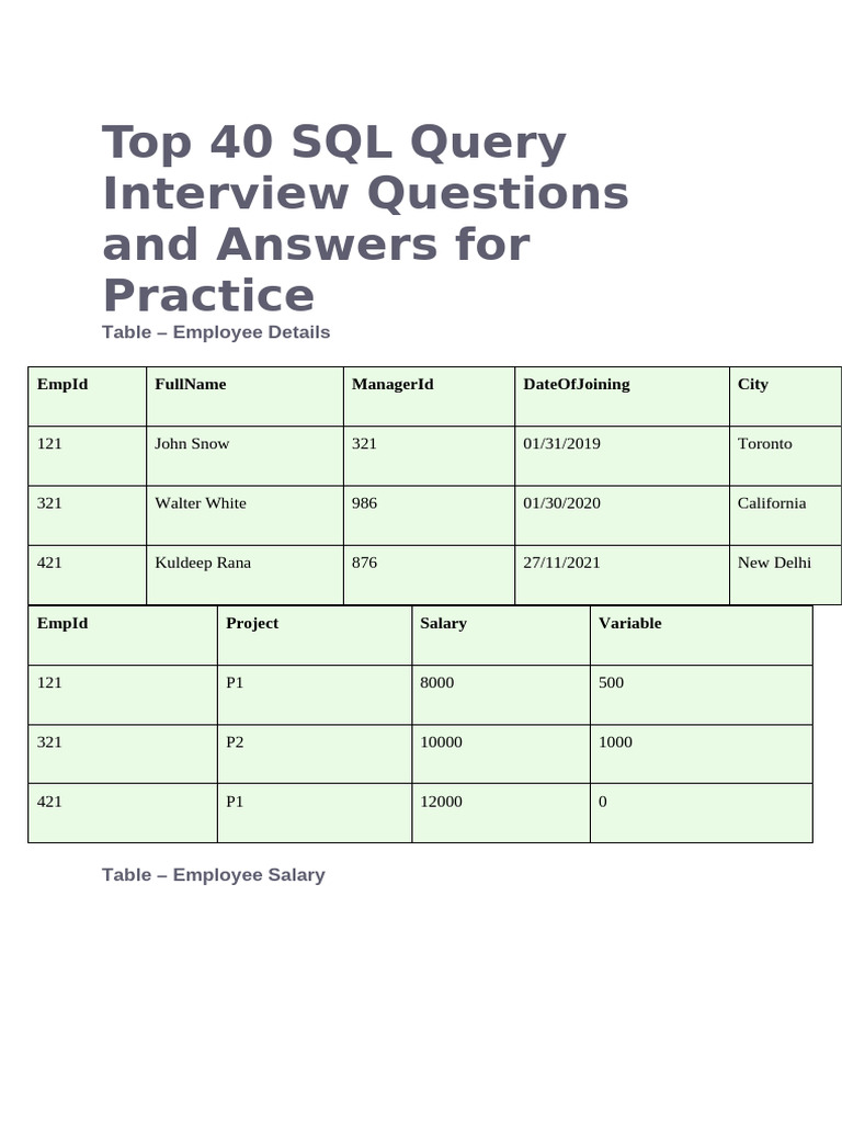 Top 40 SQL Query Interview Questions and Answers For Practice | PDF ...