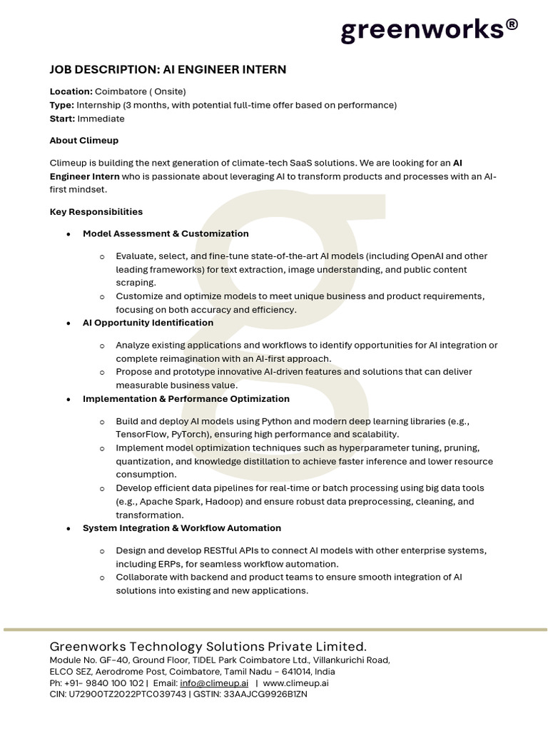 Sample JD For AI Engineer Intern | PDF | Artificial Intelligence ...