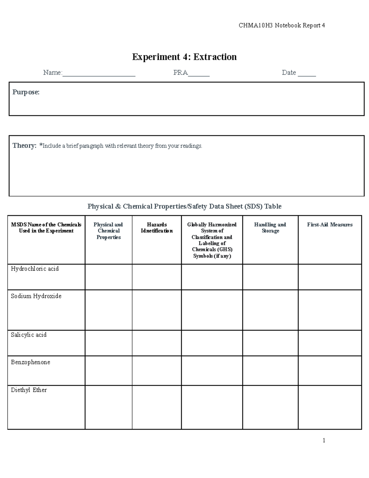 Experiment 4 Notebook Report Template-1 - CHMA10H3 - U of T - Studocu