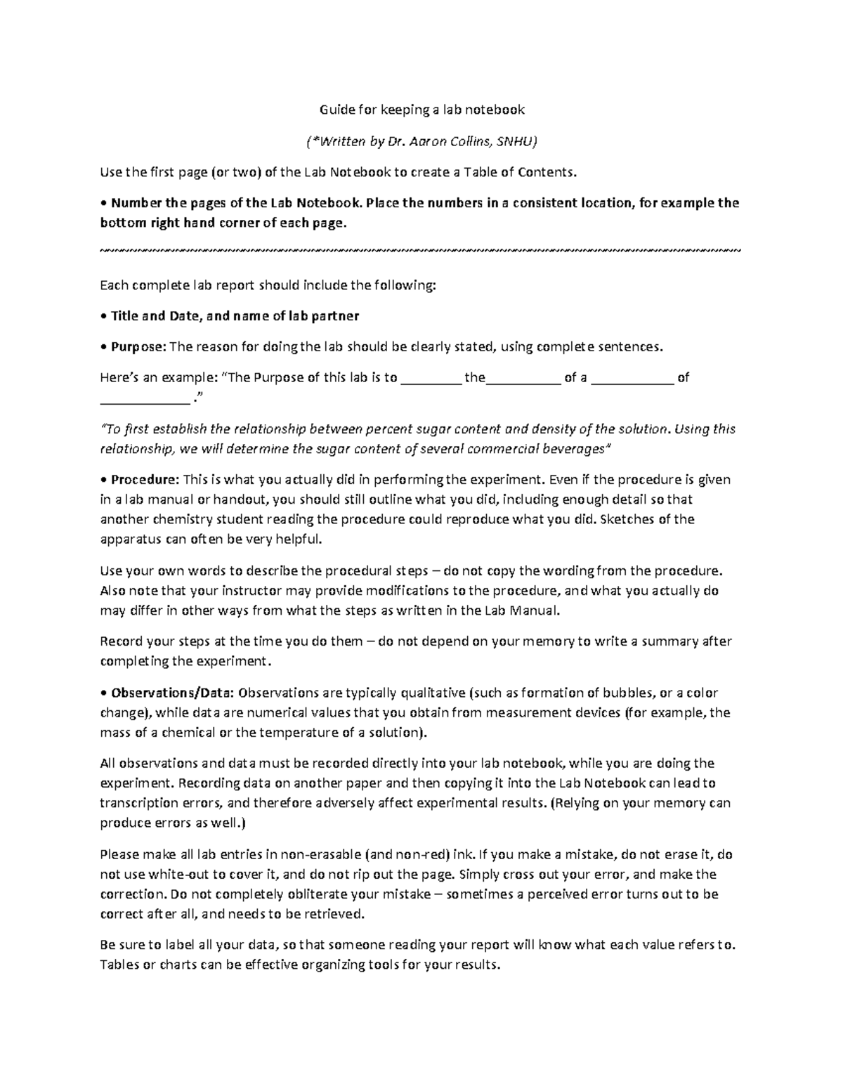 Lab Notebook Guide - Essential Template for Science Courses - Studocu