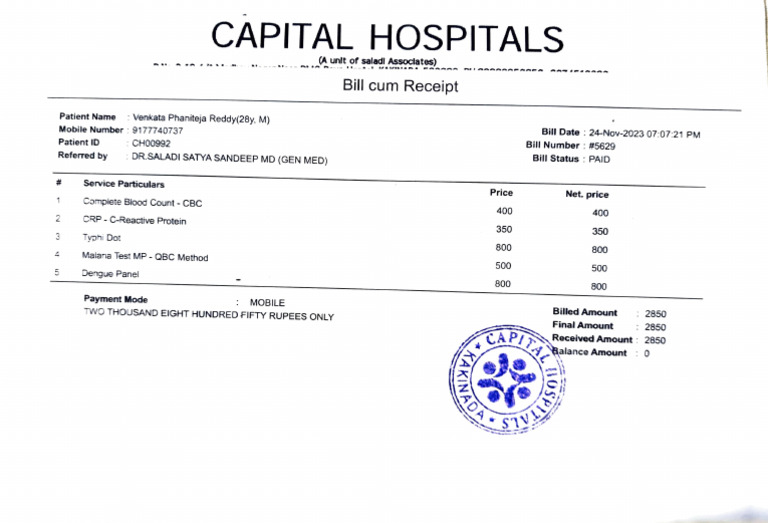 Cambridge Medical Laboratory Invoice No - 92 | PDF | Kidney | Body Fluids