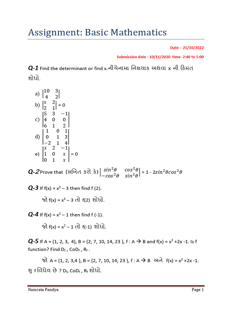 Assignment 2 with 5 Practice Problems on Mathematics Projects | MATH ...