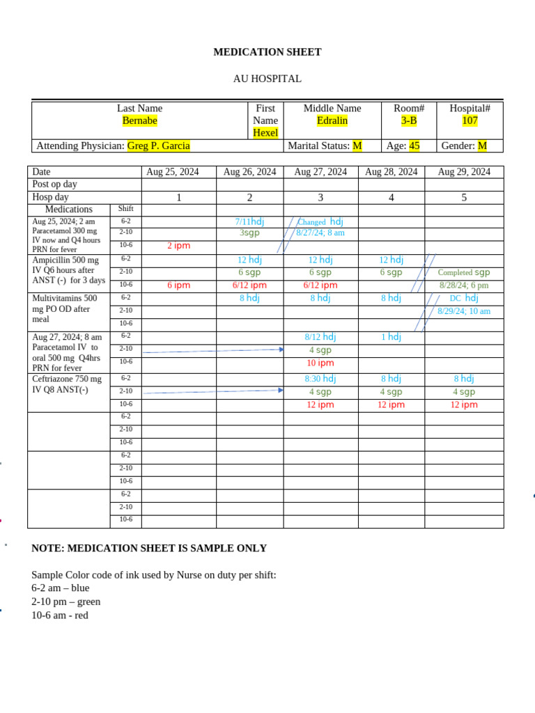 SAMPLE DOCUMENTATION Medication Sheet | PDF